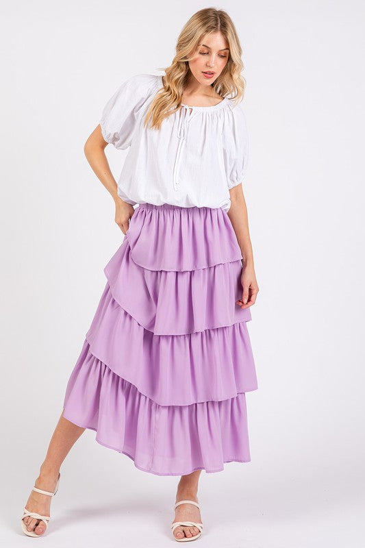 Mittoshop Chiffon Ruffle Layer Elastic Waist Midi Skirt
