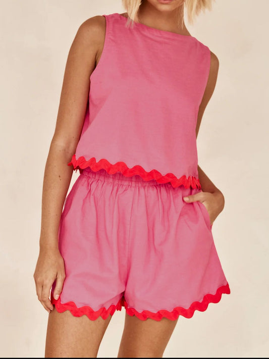Contrast Piping Short Sleeve Top and Pants Pajama Set
