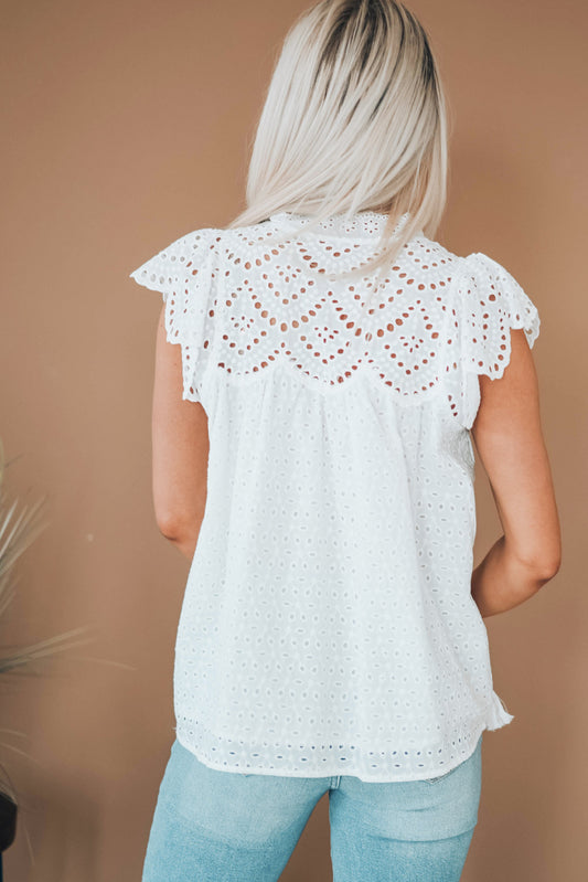 Sold outEyelet Tassel Tie Flutter Sleeve Top