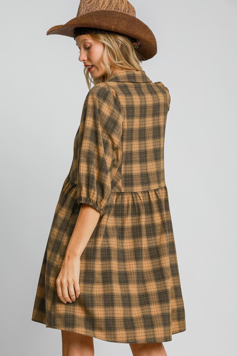Umgee Full Size Plaid Button Front Collared Neck Mini Shirt Dress Plus Size